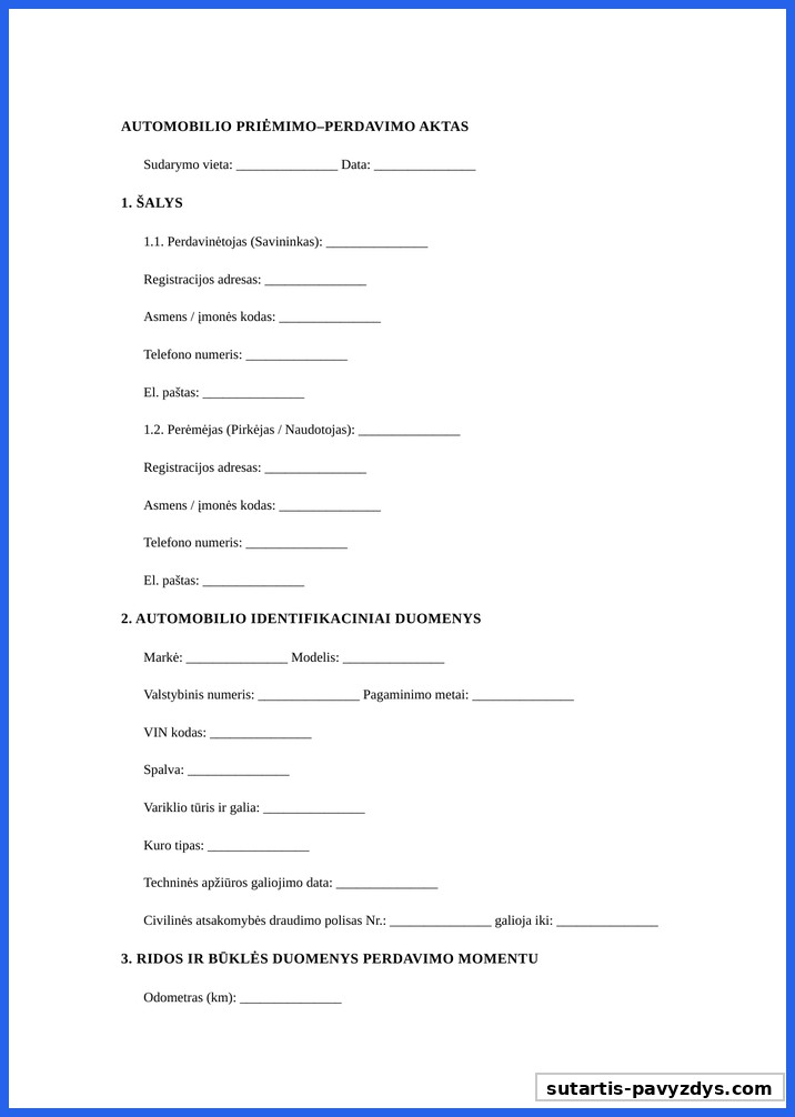 Automobilio Priėmimo Perdavimo Aktas Pavyzdys