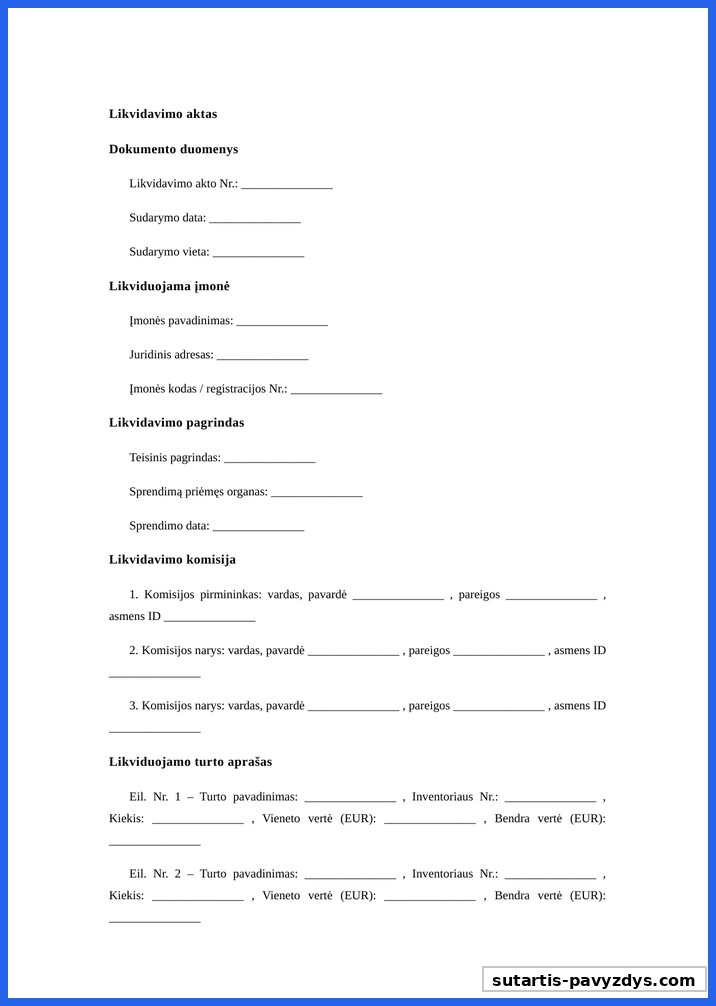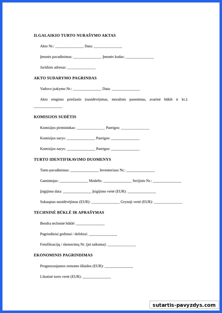 Ilgalaikio Turto Nurašymo Aktas Pavyzdys