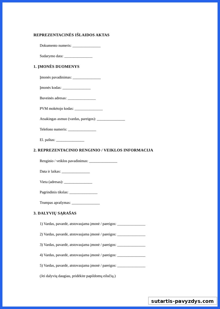 Reprezentacinės Išlaidos Aktas Pavyzdys