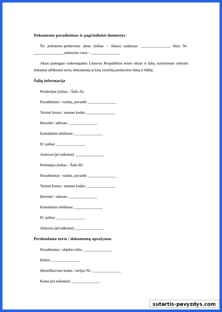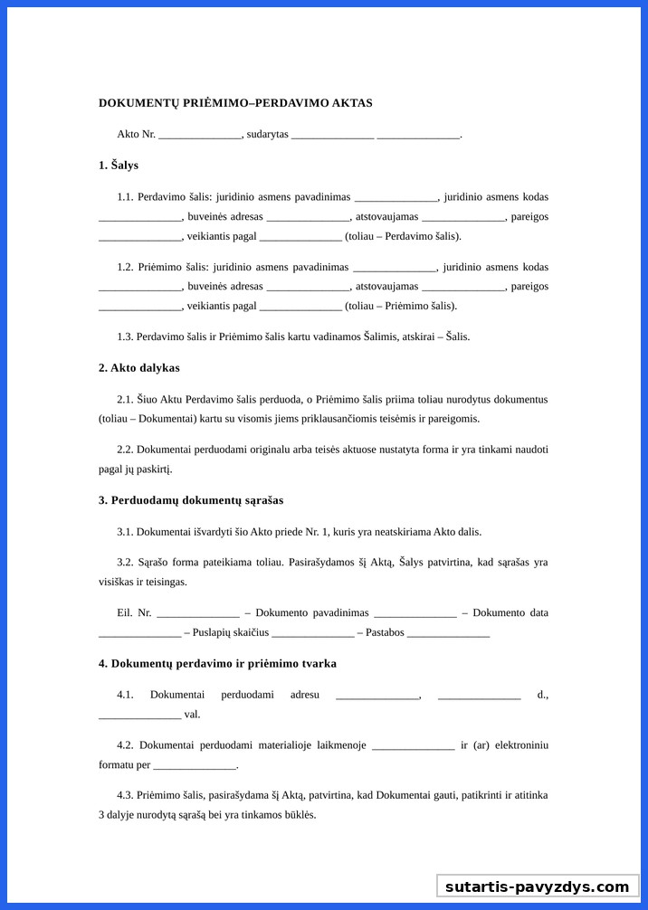 Dokumentų Priėmimo Perdavimo Aktas Pavyzdys