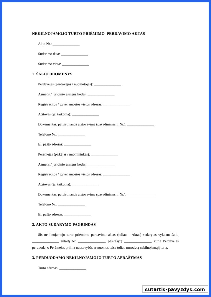 Nekilnojamo Turto Priėmimo Perdavimo Aktas Pavyzdys