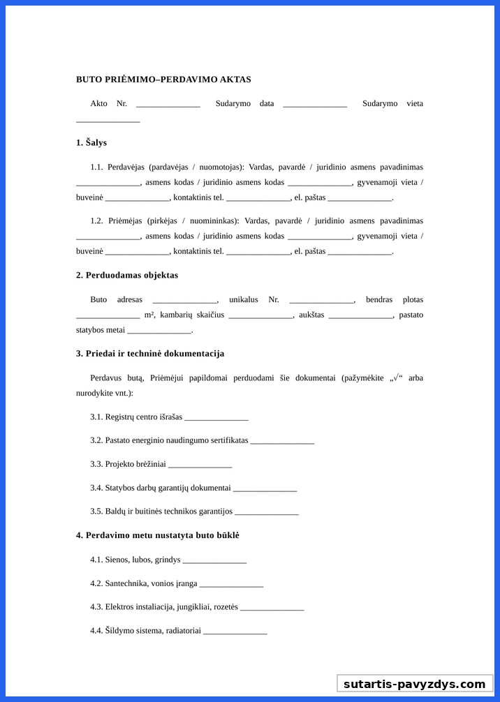 Buto Priėmimo Perdavimo Aktas Pavyzdys