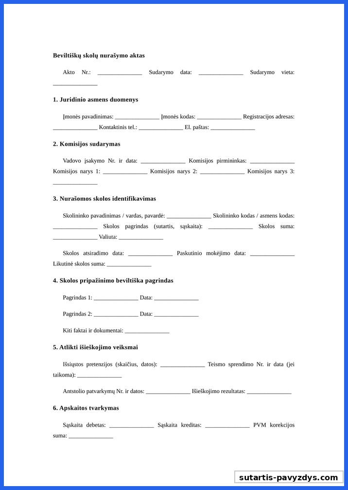 Beviltiškų Skolų Nurašymo Aktas Pavyzdys