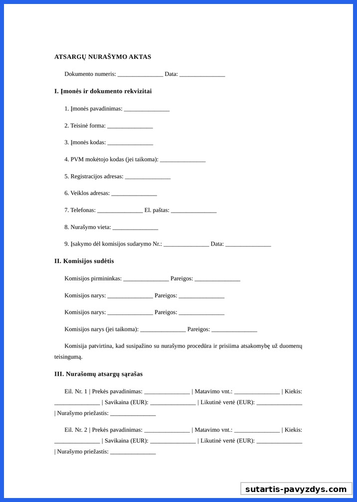 Atsargų Nurašymo Aktas Pavyzdys