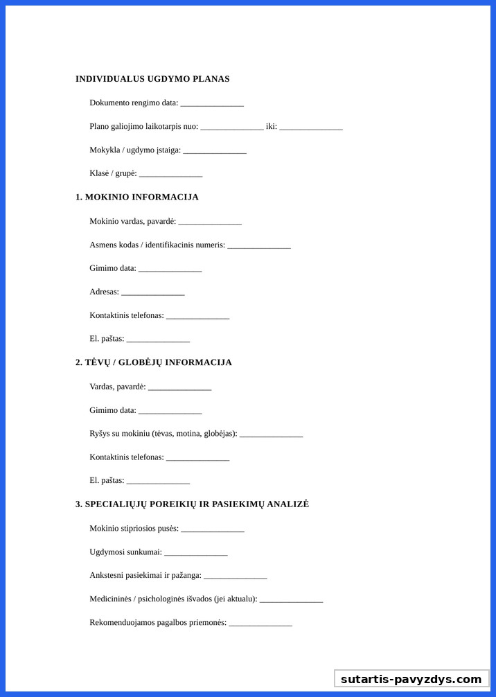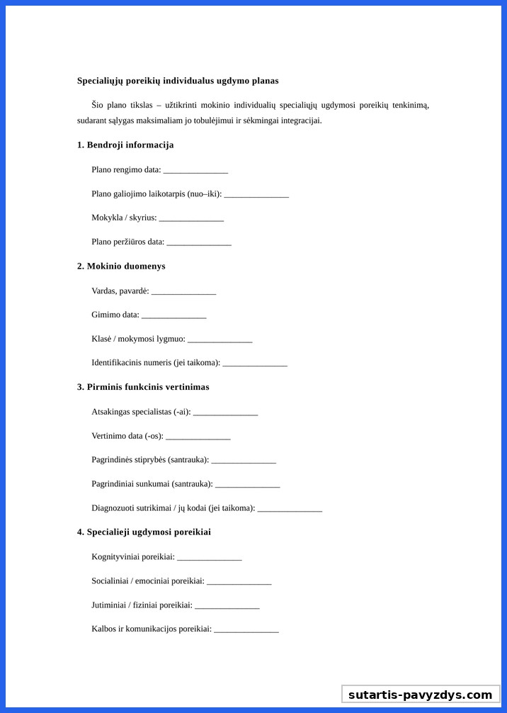 Specialiųjų Poreikių Individualus Ugdymo Planas Pavyzdys