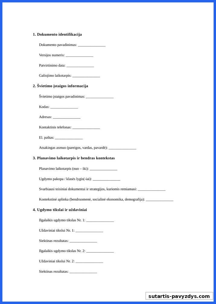 Ilgalaikis Ugdomosios Veiklos Planas Pavyzdys