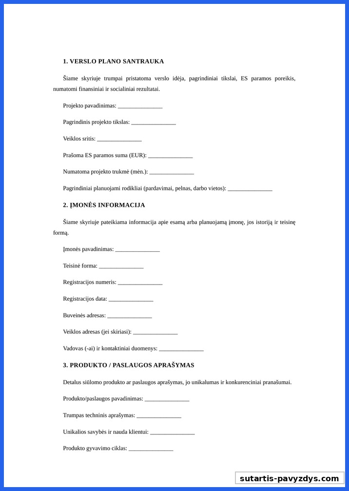 Verslo Planas Es Paramai Gauti Pavyzdys
