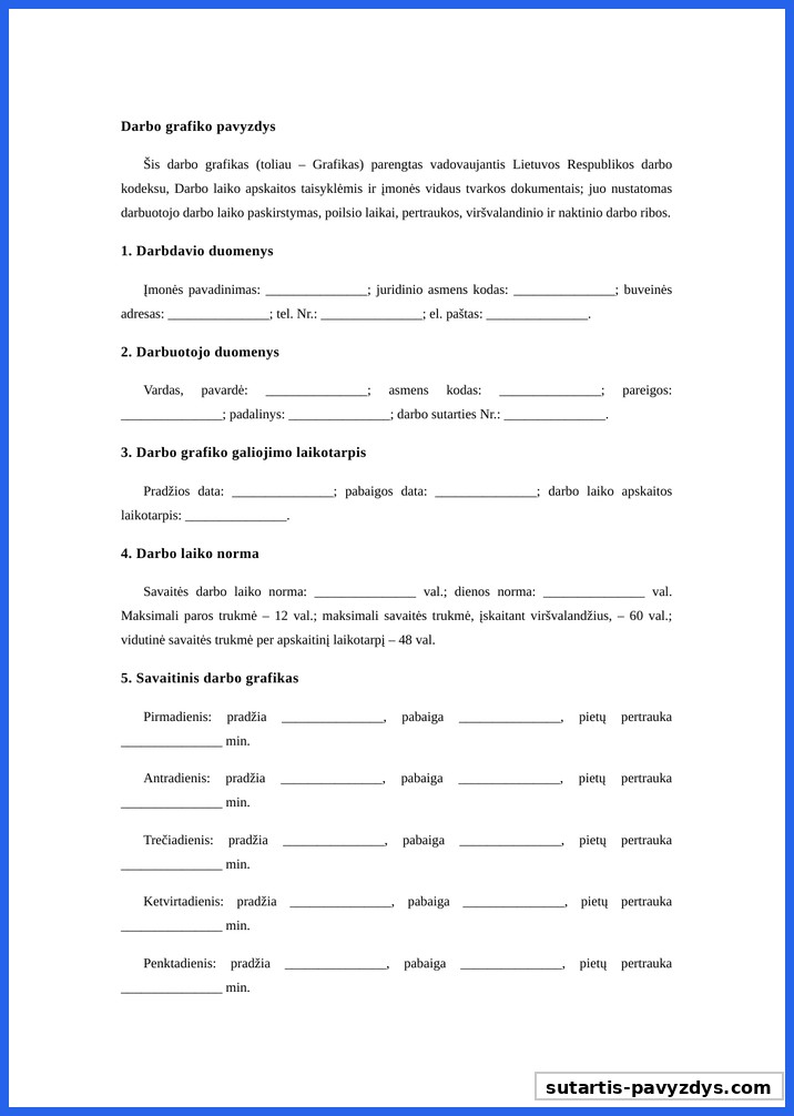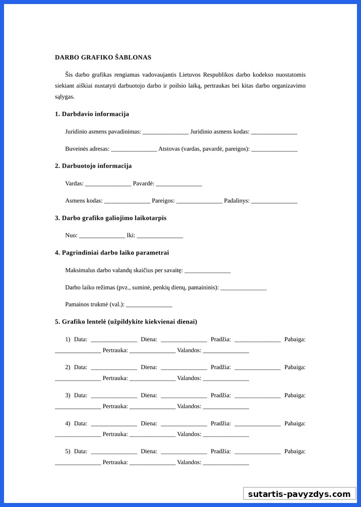Šablonas Darbo Grafikas Pavyzdys