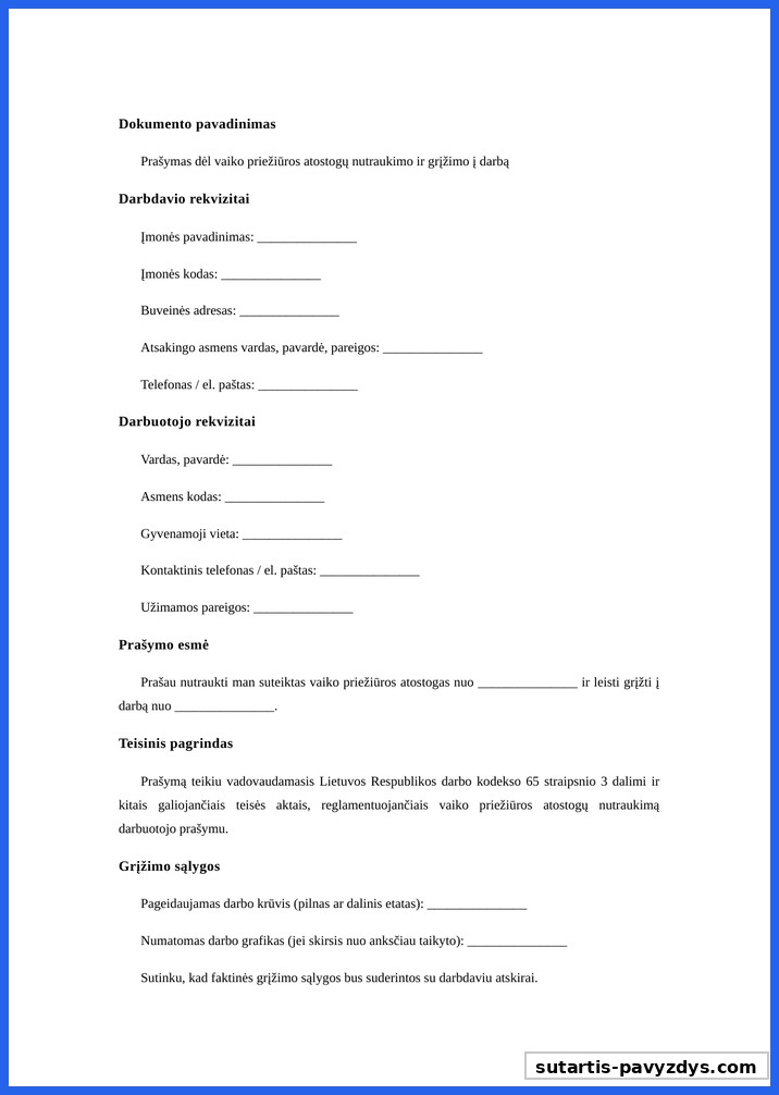 Prasymas Nutraukti Vaiko Prieziuros Atostogas Pavyzdys