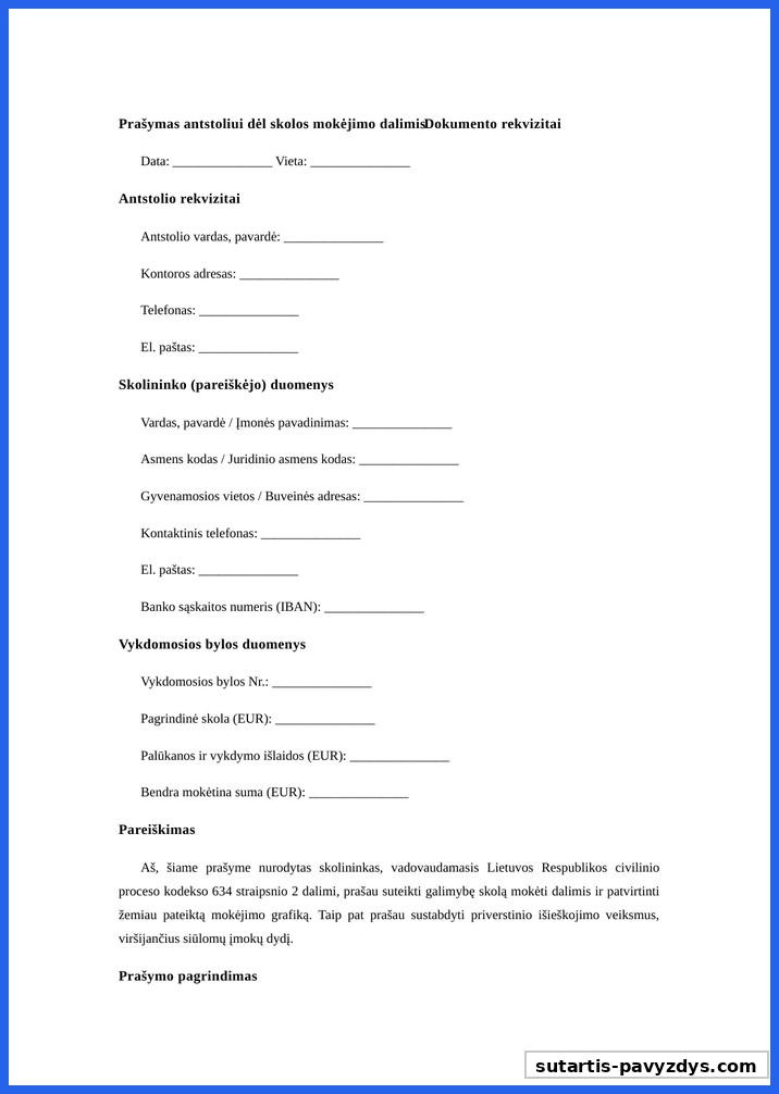 Prasymas Antstoliui Del Skolos Mokejimo Dalimis Pavyzdys