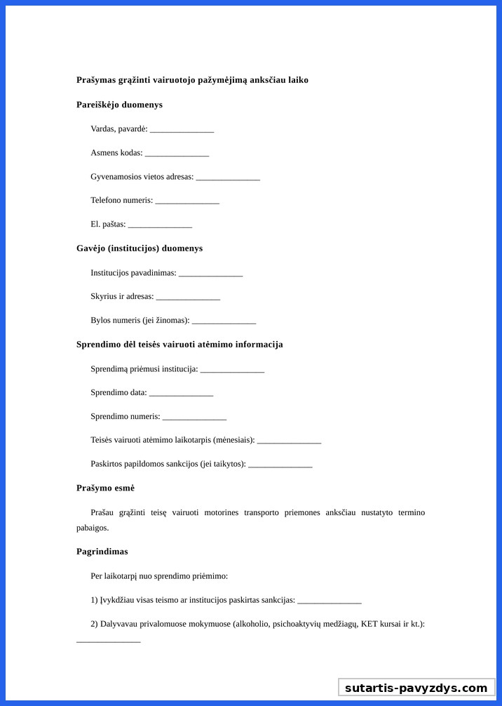 Prasymas Grazinti Teises Anksciau Laiko Pavyzdys