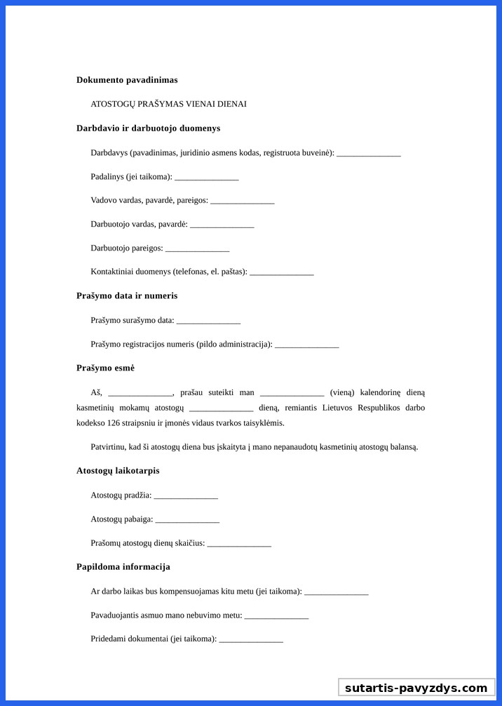 Atostogu Prasymas Vienai Dienai Pavyzdys