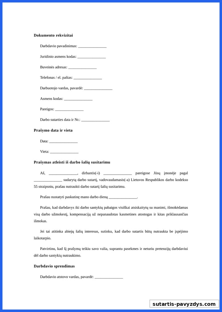 Prašymas Atleisti Iš Darbo Šalių Susitarimu Pavyzdys
