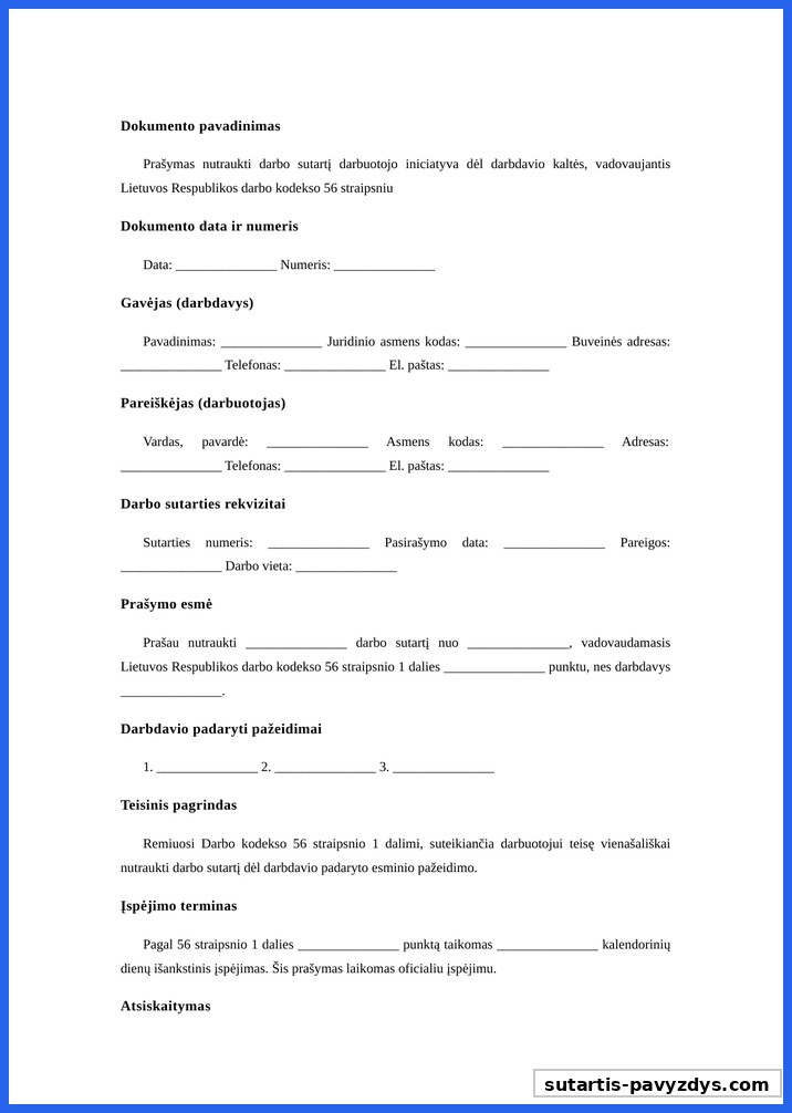 Prasymas Atleisti Is Darbo Pagal 56 Str Pavyzdys