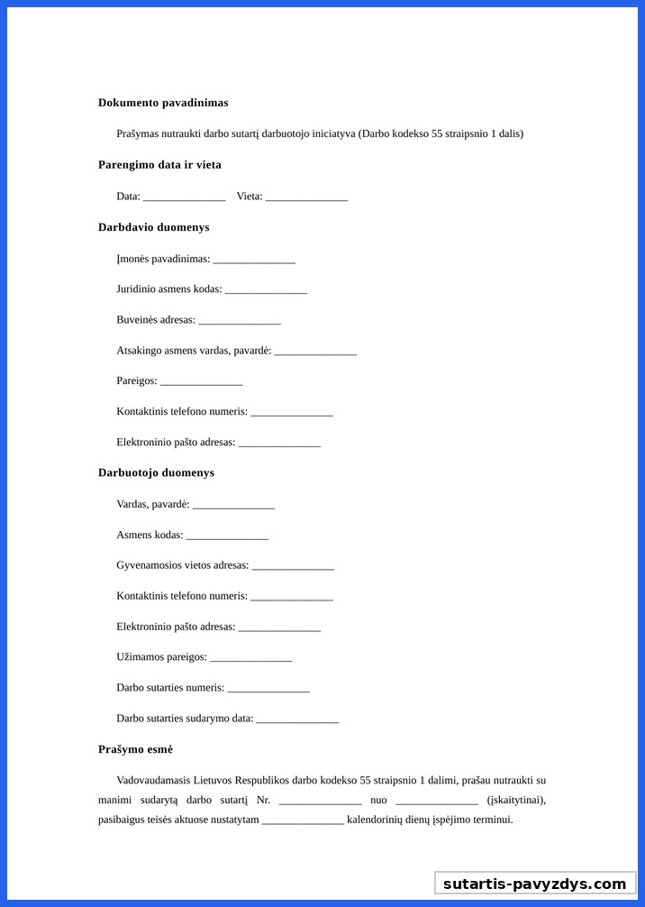 Prasymas Atleisti Is Darbo Pagal 55 Str Pavyzdys