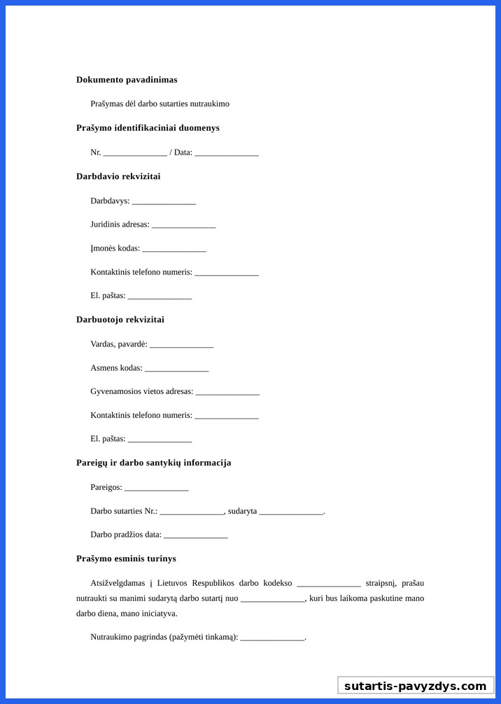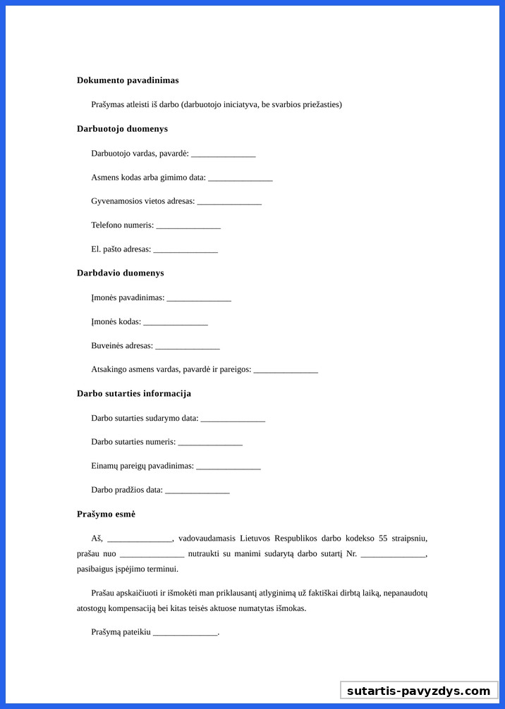 Pavyzdys Šablonas Prasymas Atleisti Is Darbo