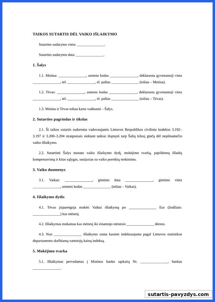 Taikos Sutartis Del Vaiko Islaikymo Pavyzdys