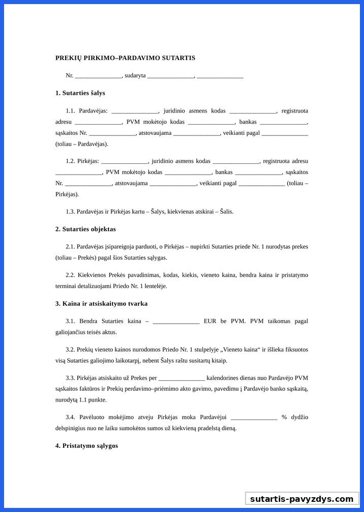 Prekių Pirkimo-Pardavimo Sutartis Pavyzdys