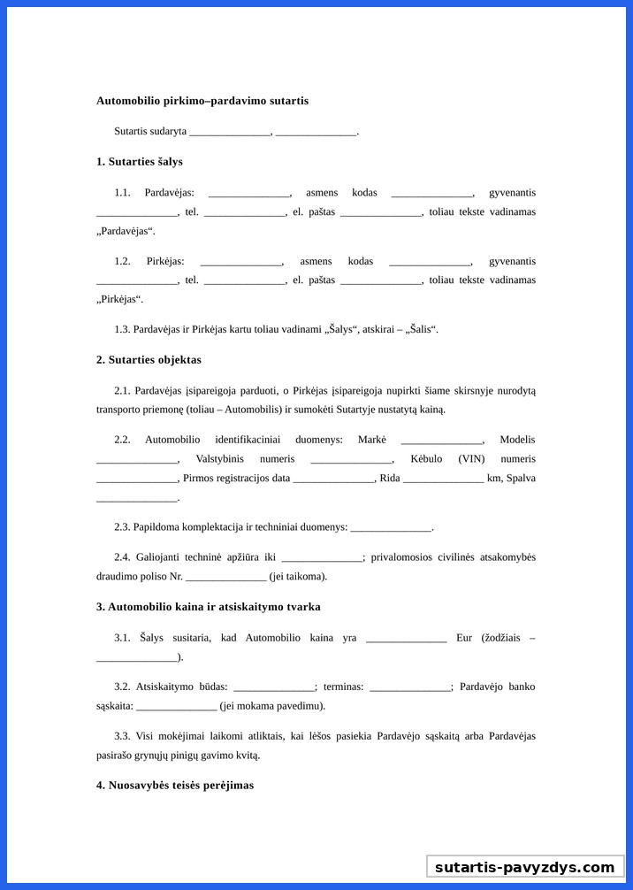 Automobilio Pirkimo Pardavimo Sutartis Pavyzdys