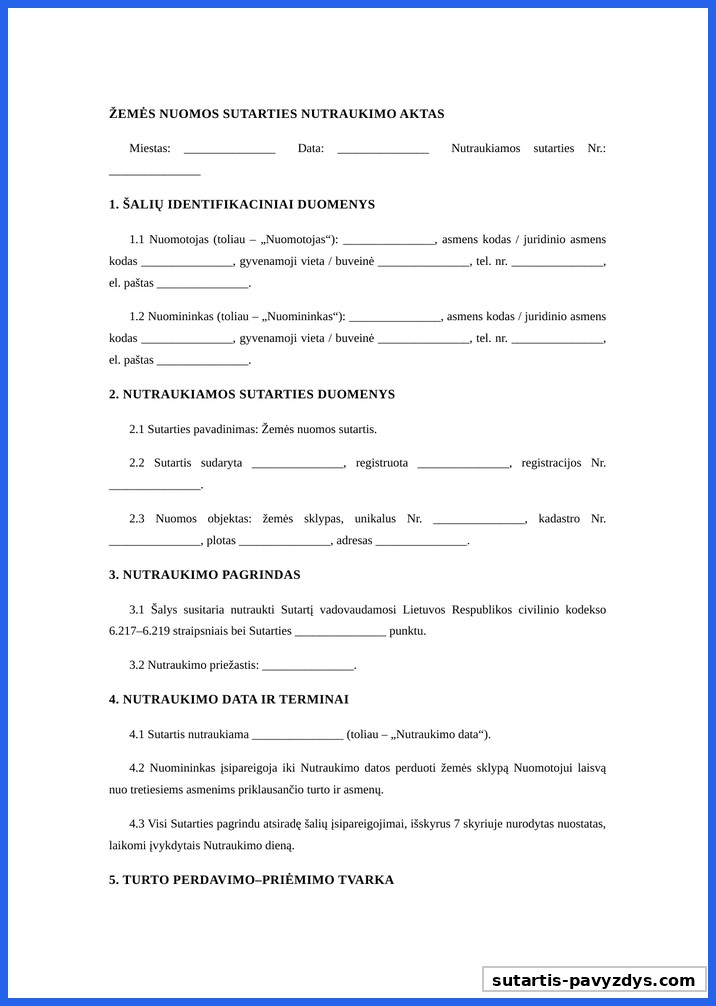 Žemės Nuomos Sutarties Nutraukimas Pavyzdys