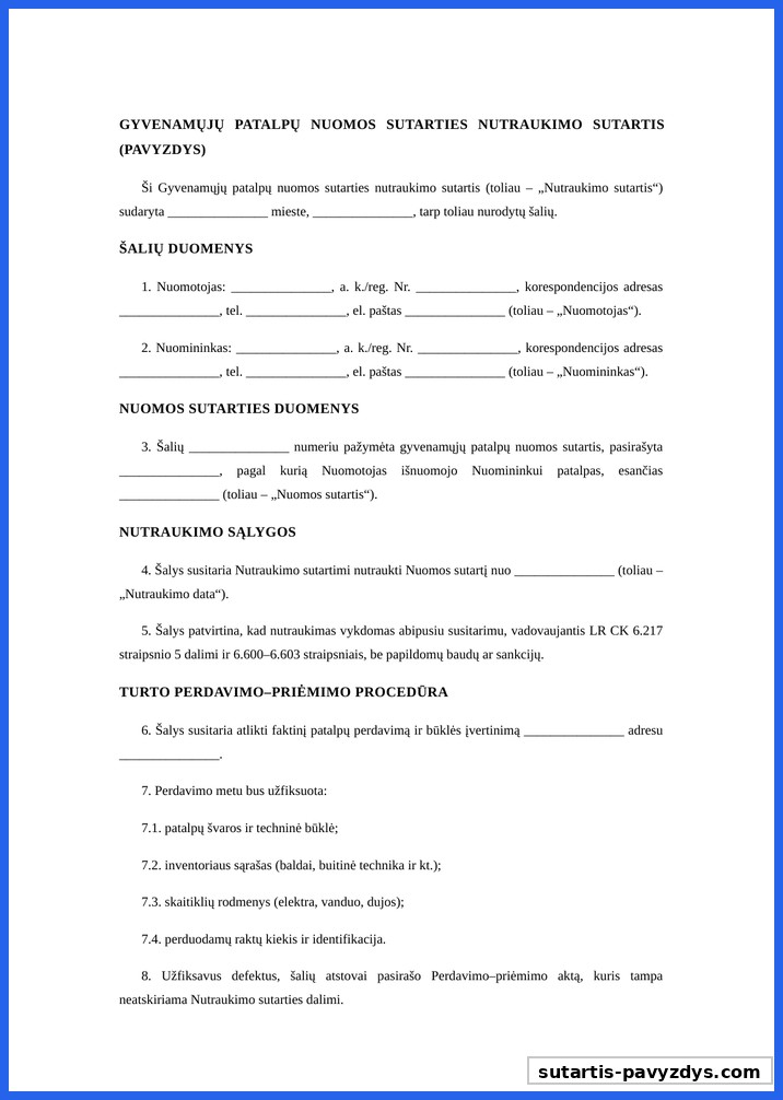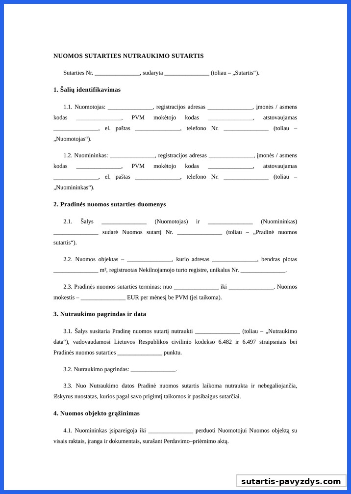 Nuomos Sutarties Nutraukimas Pavyzdys