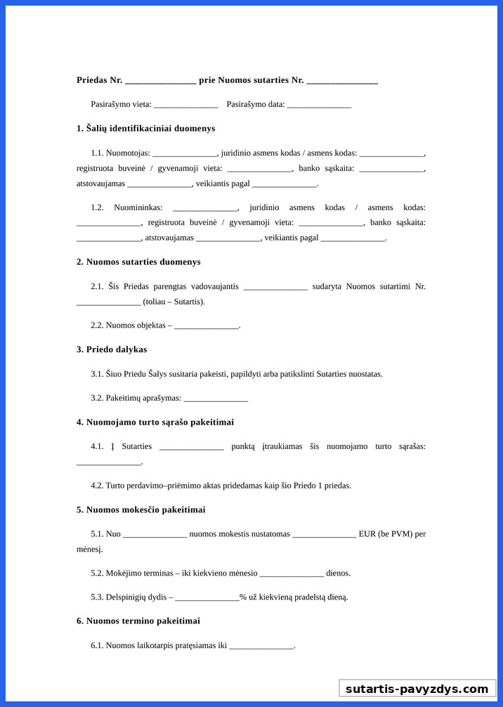 Priedas Prie Nuomos Sutarties Pavyzdys