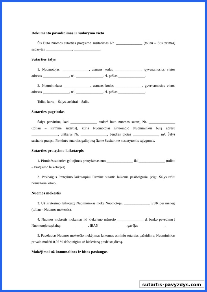 Buto Nuomos Sutarties Pratęsimo Pavyzdys