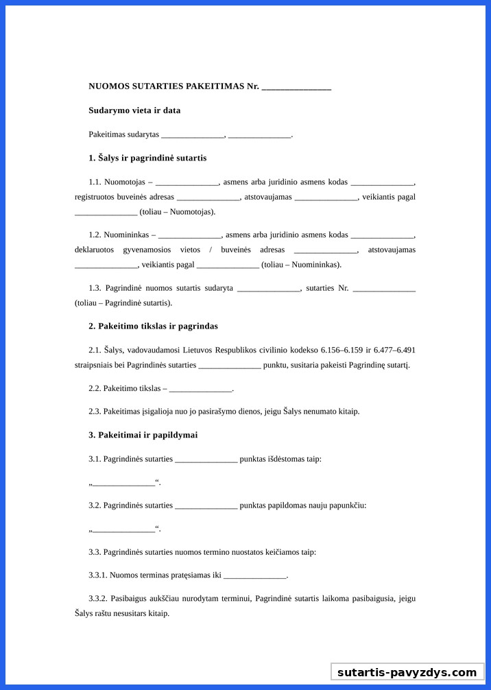 Nuomos Sutarties Pakeitimas Pavyzdys