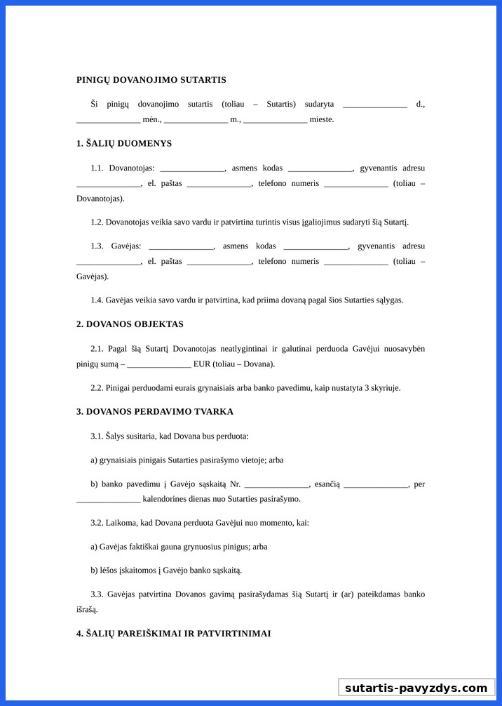 Pinigu Dovanojimo Sutartis Pavyzdys