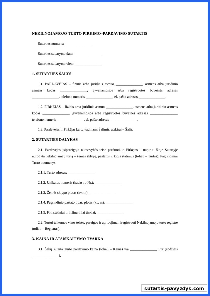 Nekilnojamo Turto Pirkimo Pardavimo Sutartis Pavyzdys